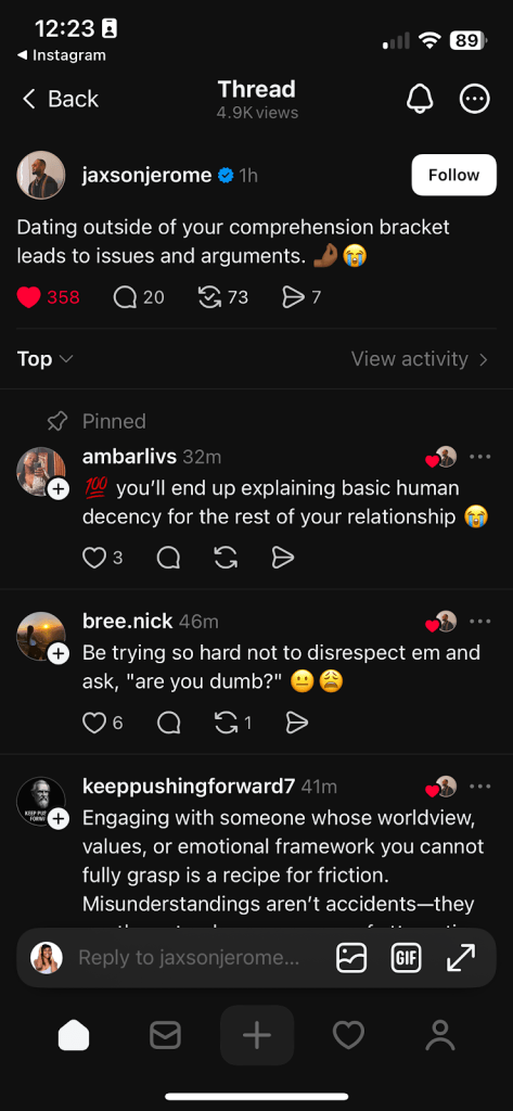 Let me be clear, I do not operate this way in every intellectual conversation. Self-control is another value that I hold dear to my heart. Thinking these types of thoughts outside of conversations with my significant other is repulsive and inappropriate. Any man who is not my man is looked at as if they are my brother. I would never look at my brother like anything other than a brother, so those types of thoughts don’t cross my mind.